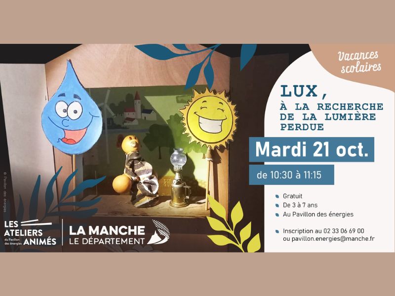 Tijdens deze vertelworkshop in het Pavillon de énergies in Saint-Lô ontdekken kinderen het verhaal van Lux, een ongewoon personage dat op zoek is naar energiebronnen om zijn olielamp te vervangen. Onderweg ontmoet hij Aeolus, Helios en een heleboel andere personages die hem zullen helpen om verschillende energiebronnen te bekijken.
