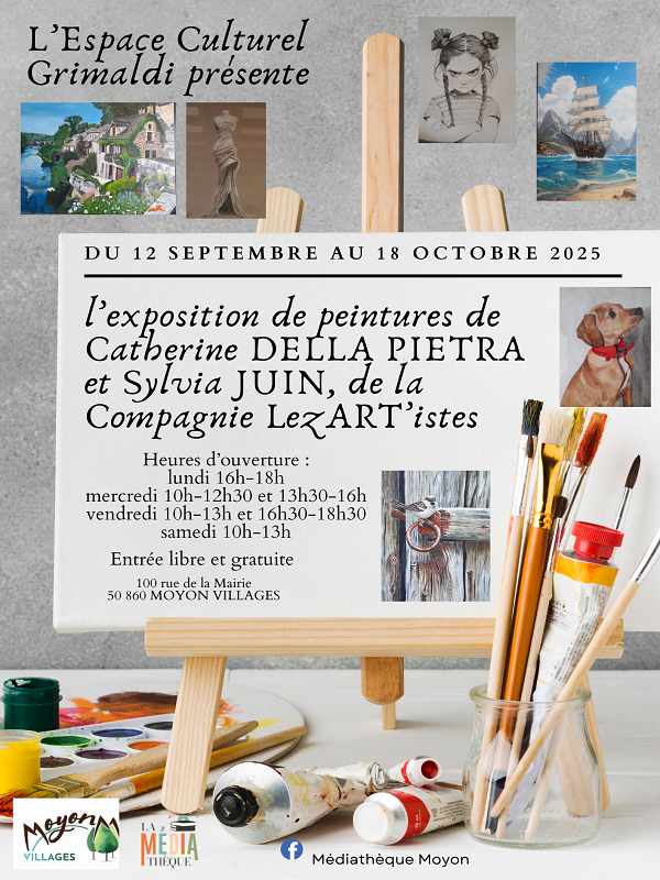 Van 12 september tot 18 oktober is er in de Espace Culturel Grimaldi een tentoonstelling van schilderijen van Catherine Della Pietra en Sylvia Juin, van het gezelschap Lezart'istes.