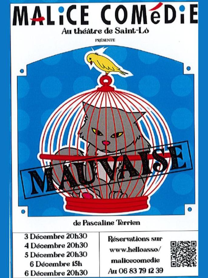 Kom op 3, 4, 5 en 6 december naar het theater van Saint-Lô voor het stuk "Mauvaise" van Pascaline Terrien!