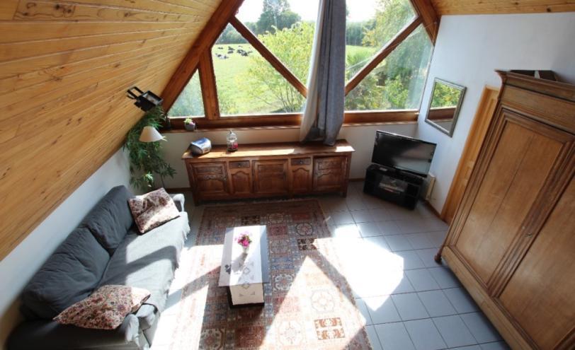 Accommodatie gelegen in de gemeente Mesnil-Amey. Deze grote studio op het zuiden (50 m²), met grote ramen die voor veel licht zorgen, ligt op het Normandische platteland en profiteert van een grote, groene tuin die wordt gedeeld met de eigenaren.
