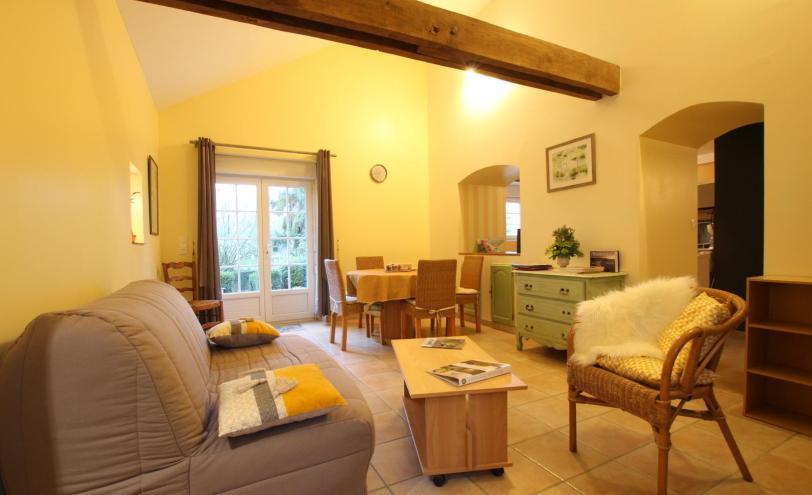 Het huis is geschakeld aan een andere huurwoning. Woonkamer met slaapbank. TV. WIFI. Keukenhoek, vaatwasser, wasmachine. Doucheruimte. WC. Eerste verdieping: 1 slaapkamer. 1 tweepersoonsbed (140 cm). WC. Verhuur van lakens en huishoudlinnen. Schoonmaakservice extra. Elektrische verwarming inbegrepen. Omheind privéterrein. Terras. Tuinmeubilair. Barbecue.