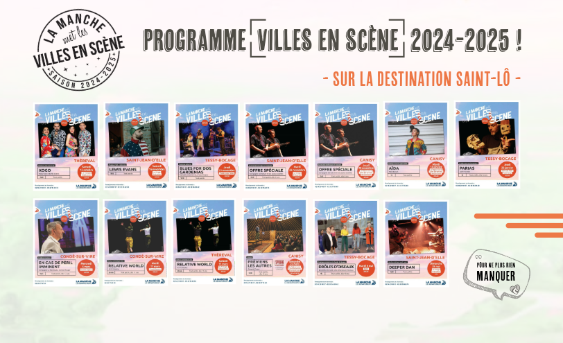 Concerts, spectacles, danse... humour, tendresse, réflexion... Pour cette nouvelle saison du festival "La Manche met les villes en scène" sur la destination Saint-Lô, découvrez, d'octobre à mai, un programme original et éclectique au plus de chez vous !