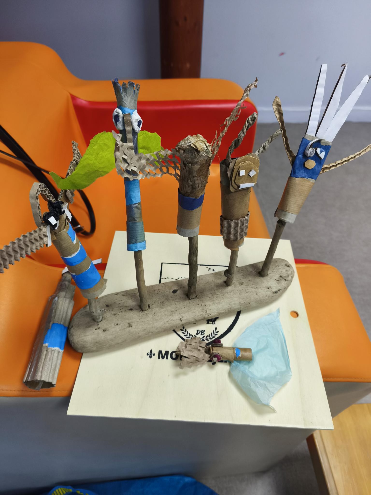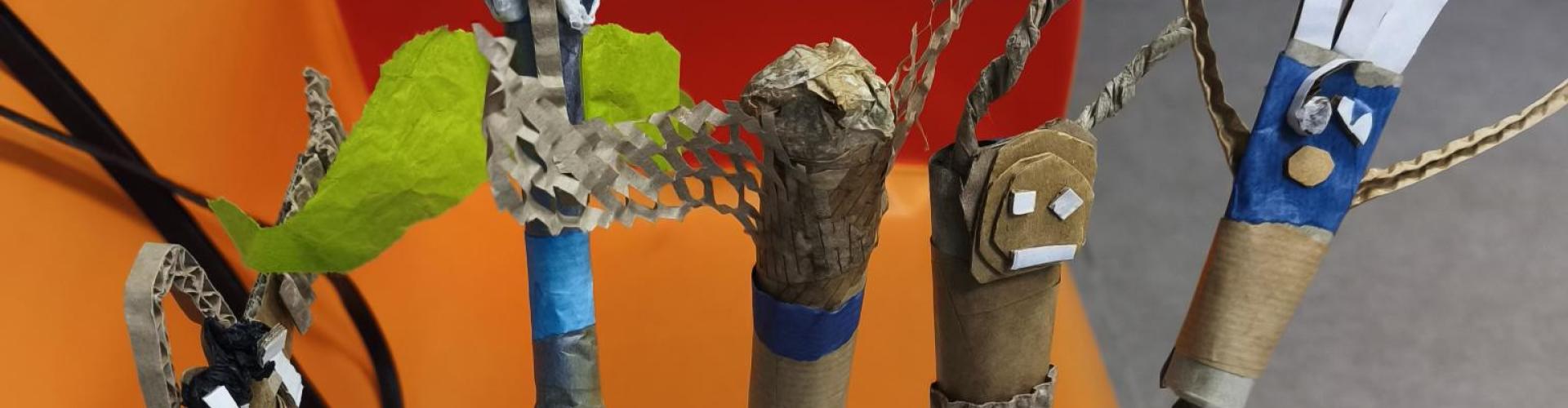 Le projet de Sophie Hutin propose aux enfants de 3 à 5 ans une découverte du théâtre de marionnettes à travers la fabrication et l’animation de figurines avec des matériaux de récupération. Ils apprennent à les manipuler, à les faire parler, chanter et jouer de petites scènes inspirées de comptines.